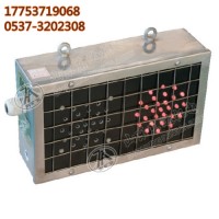 KXB12(A) 矿用本安型声光报警箱外壳上方有悬挂吊鼻,发光二极管为双色警示灯、双路输出,报警箱能发出红、绿两种颜色的光信号并伴有相应的警示语。