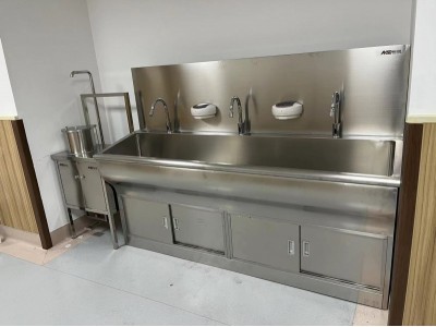 不锈钢洗手池结构组成:全不锈钢槽体,整体无缝设计,极易清洁; 红外感应出水系统配有医用龙头,不浪费水资源; 自动给皂/给液器,使用方便卫生; 豪华型不锈钢背板,保持整体效果(标准型); 可根据客户要求配置热水器,烘手器; 出水方式:感应式、膝碰式、脚踏式任选一种;
